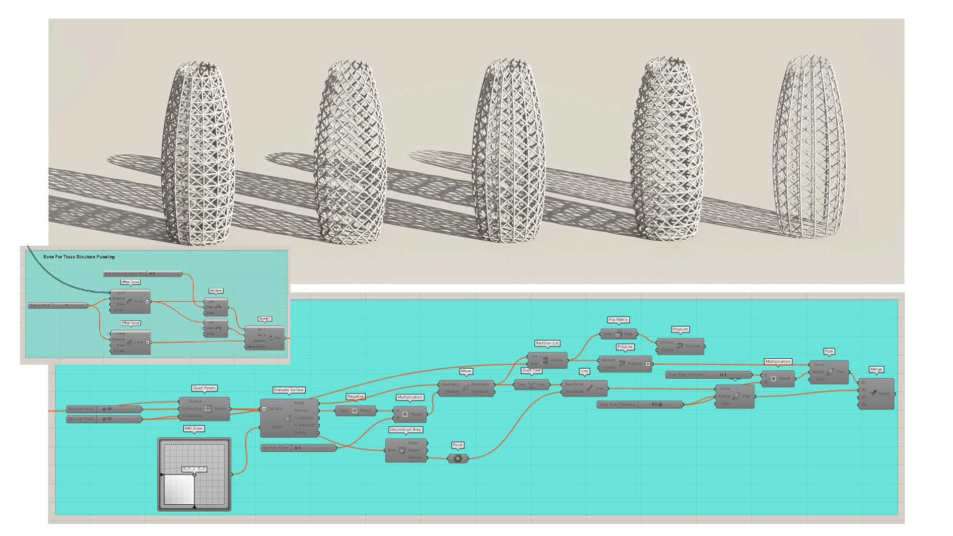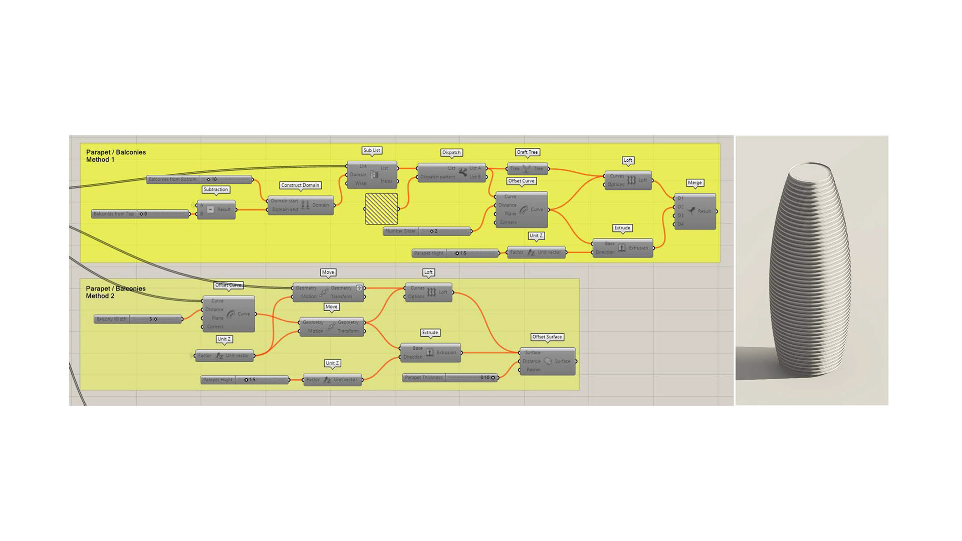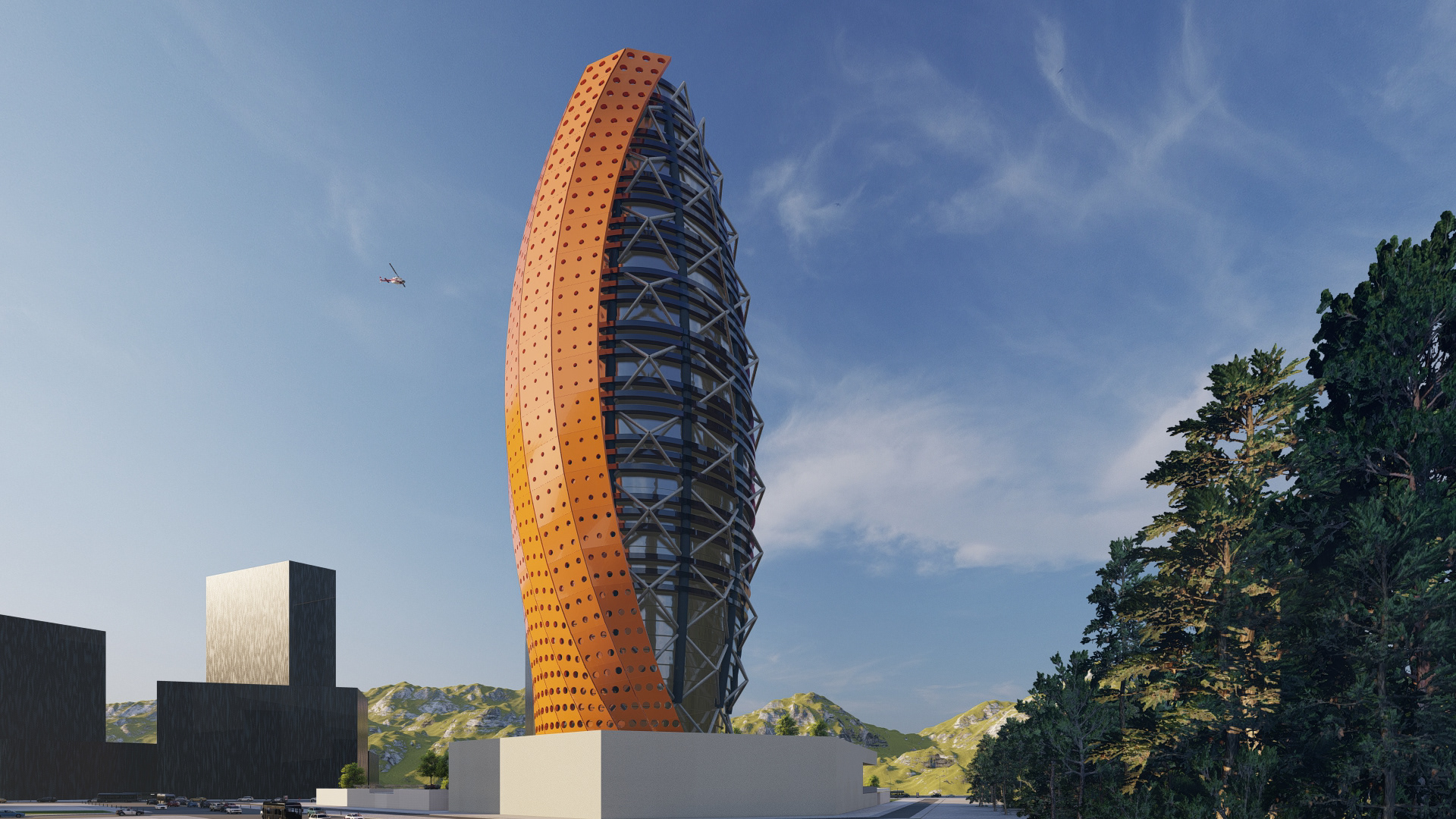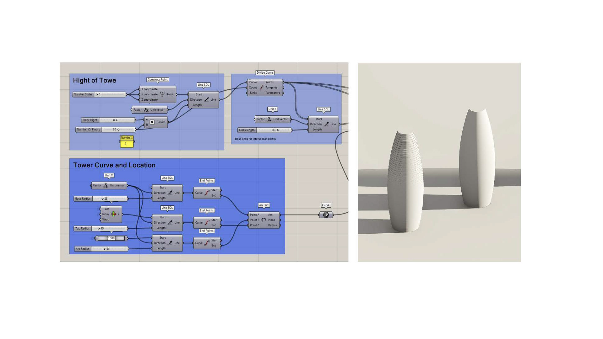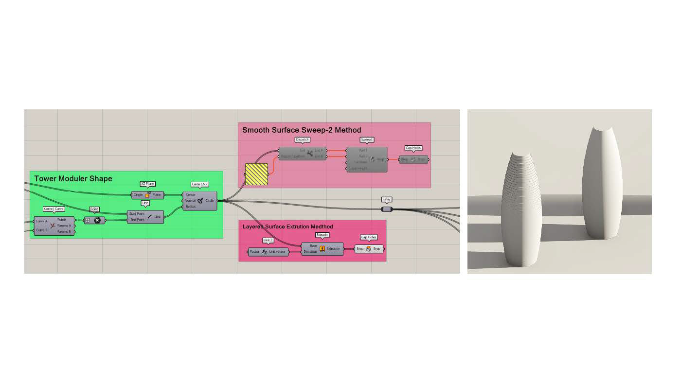 Project Description: The Capstone project is for a Tower Shell Design using visual coding in rhino and Grasshopper tools. The design used multiple concepts in visual coding and decoding the form to reach the final result. It consists of a parametrical layers system. The design took a simple approach to focus more on the editable parameters of the different layers in the façade.