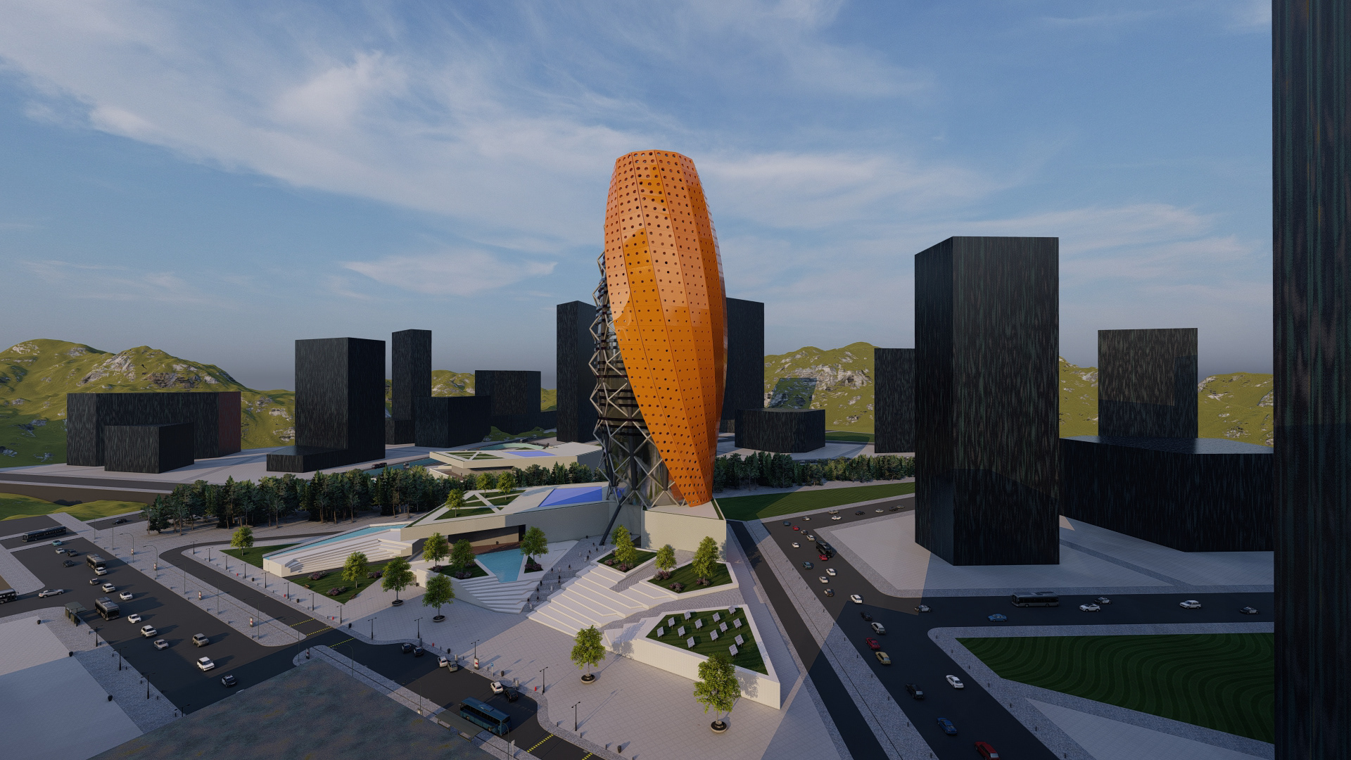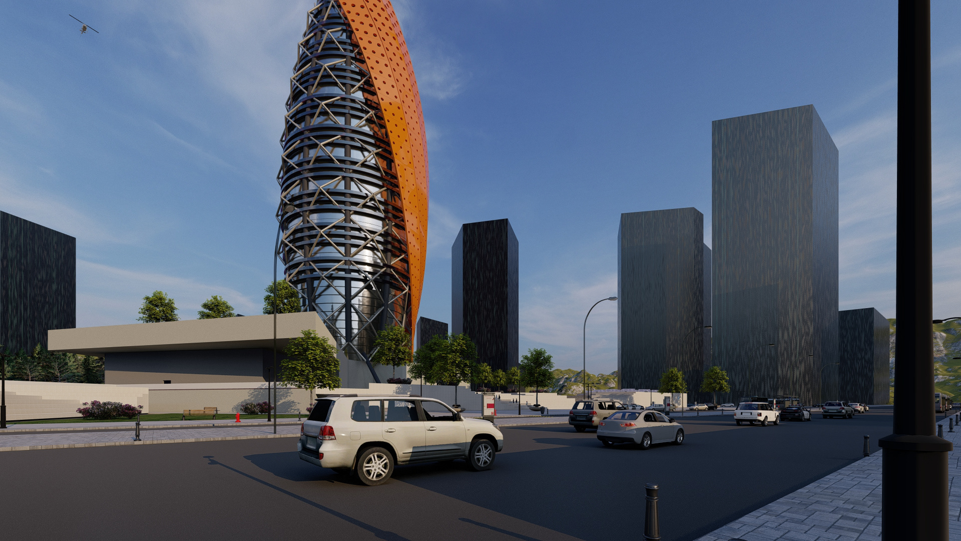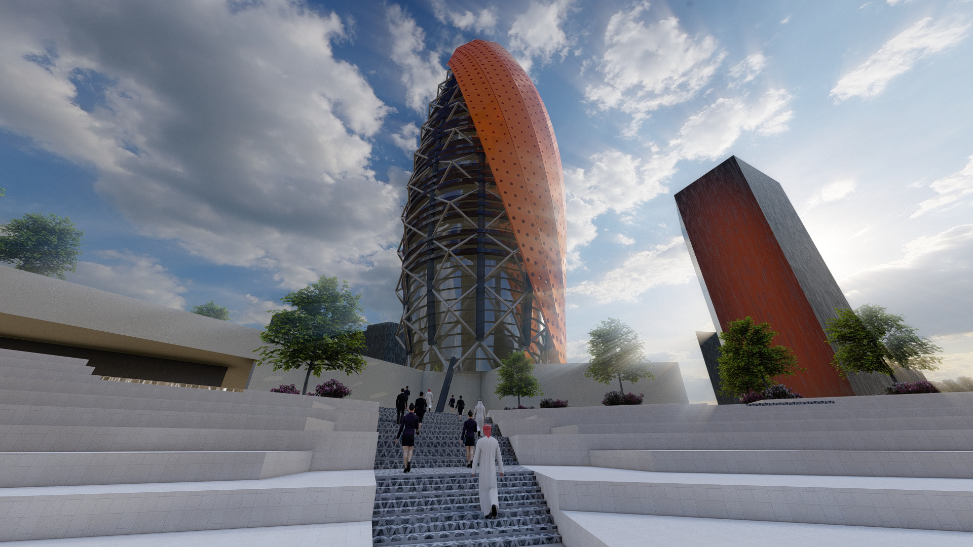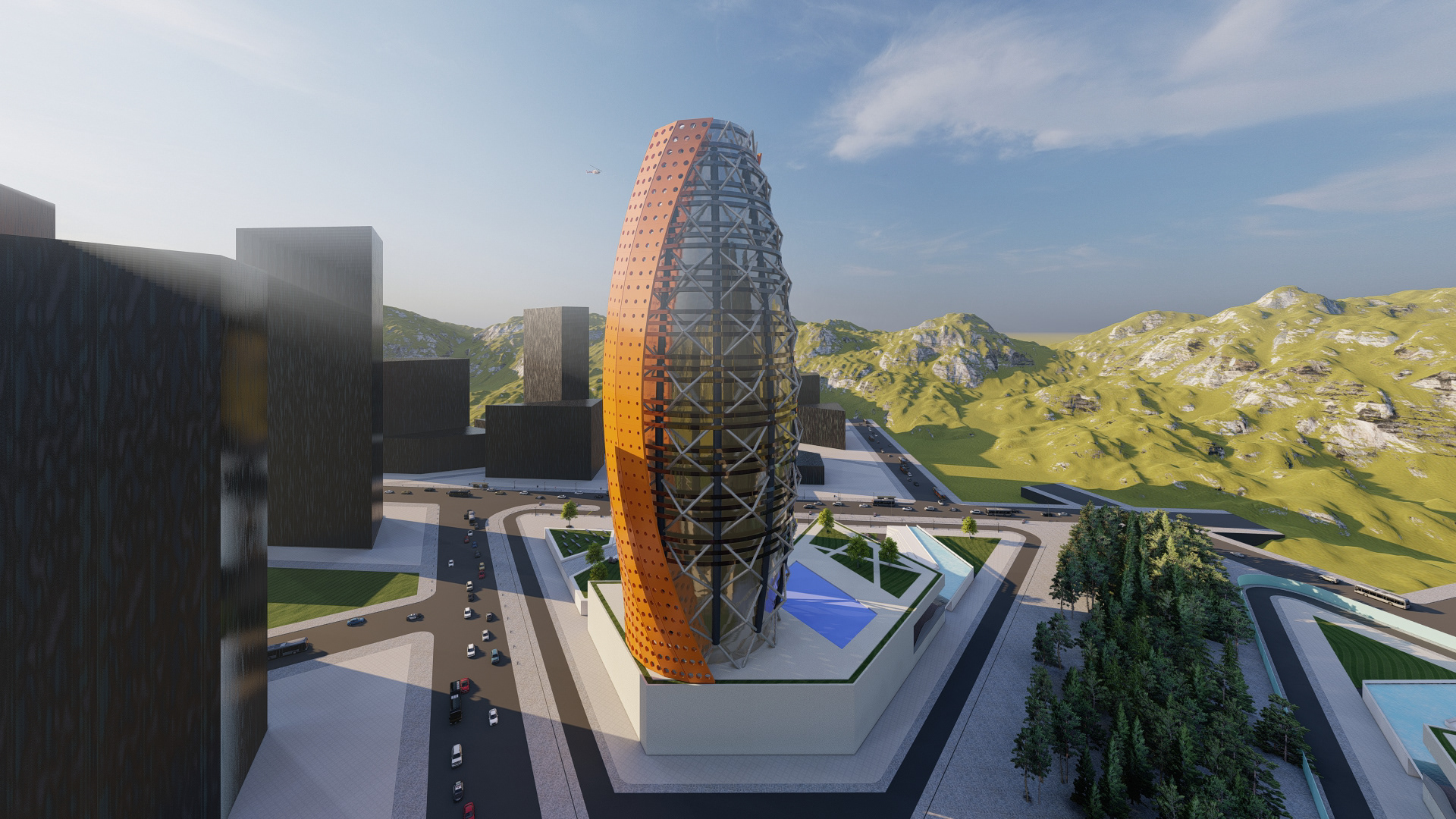 Project Description: The Capstone project is for a Tower Shell Design using visual coding in rhino and Grasshopper tools. The design used multiple concepts in visual coding and decoding the form to reach the final result. It consists of a parametrical layers system. The design took a simple approach to focus more on the editable parameters of the different layers in the façade.