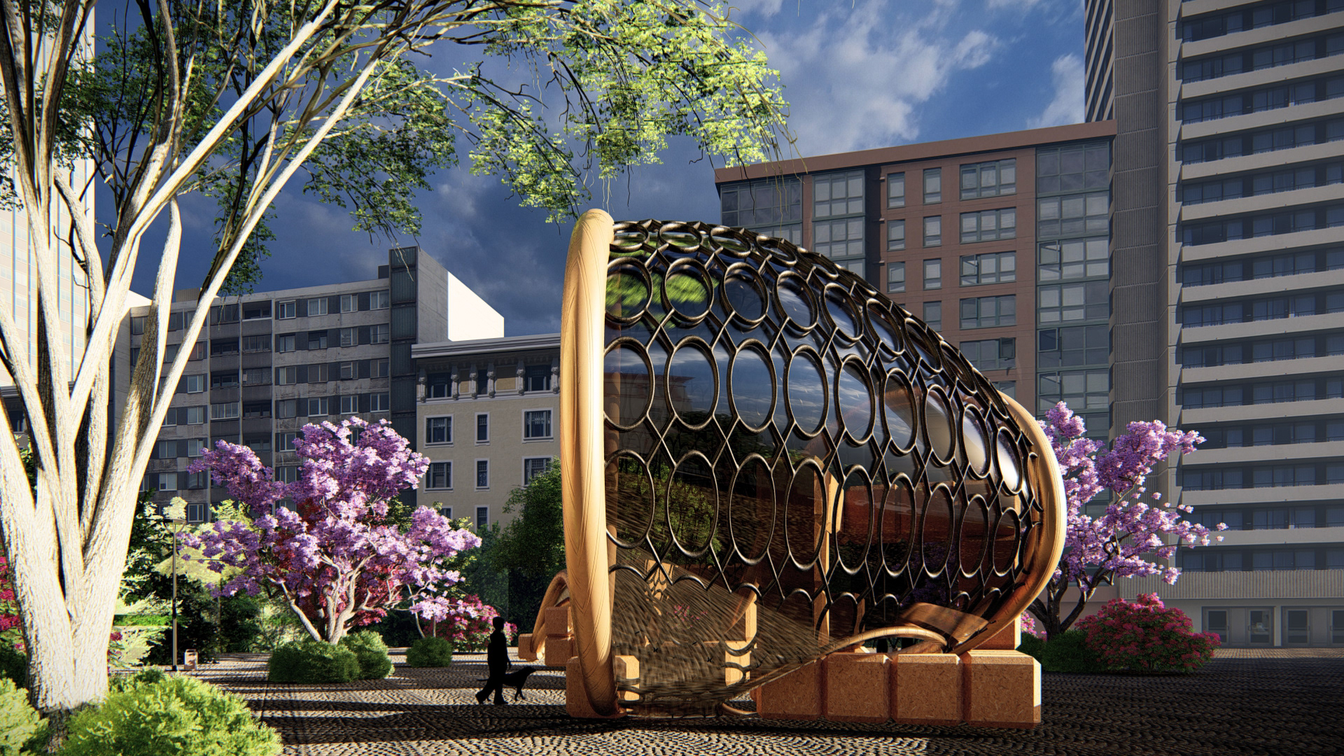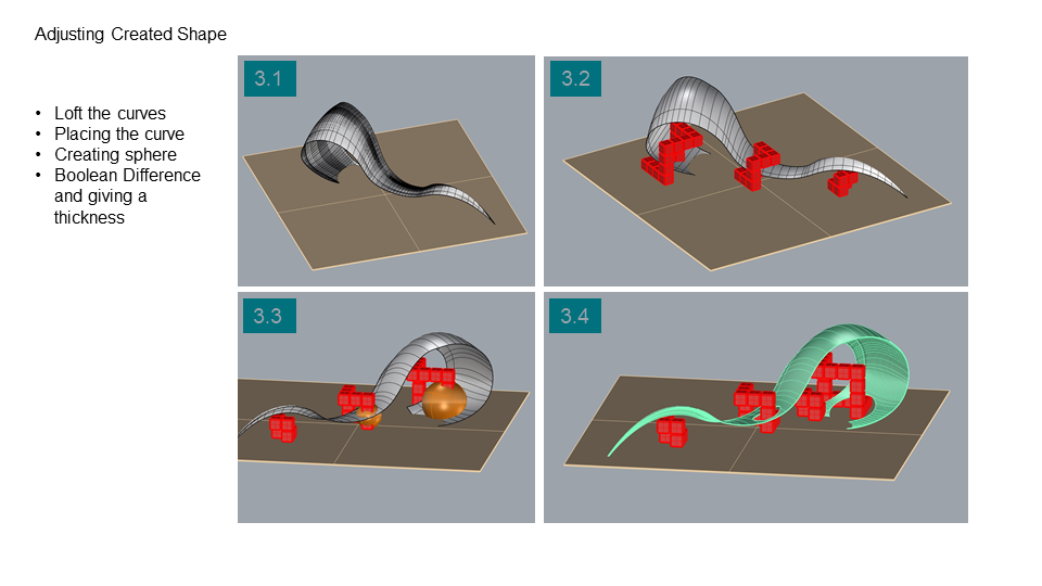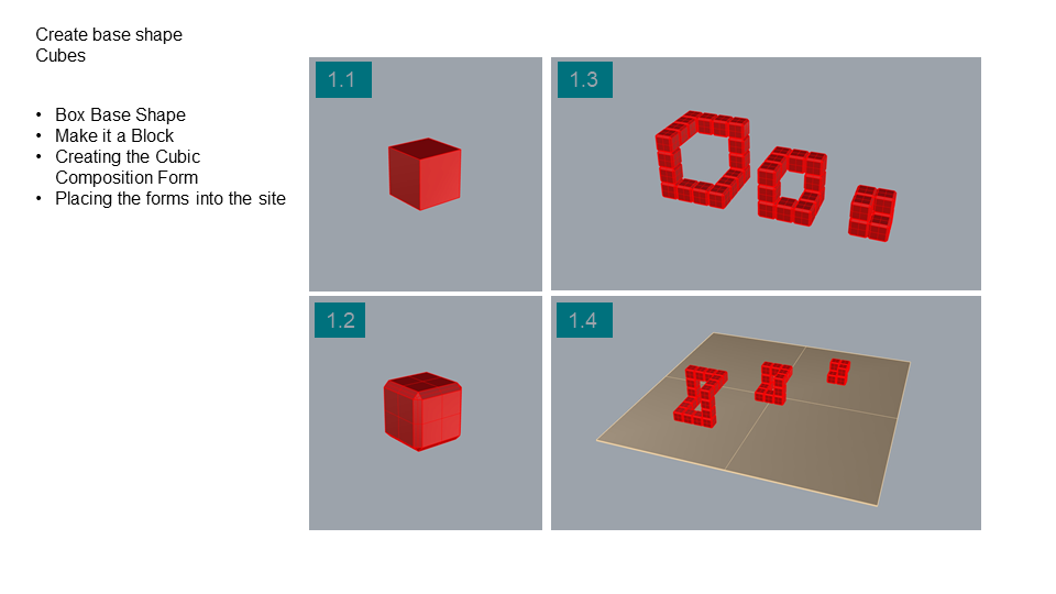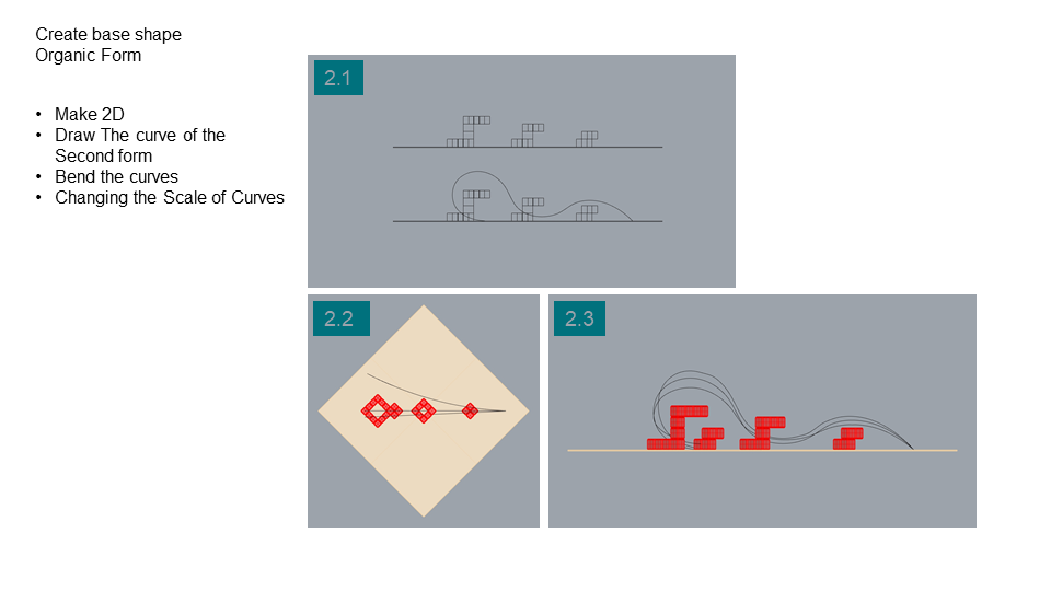 Project Description: The Project is about designing a pavilion and exploring Rhino Modeling, The initial idea of the project was about a cube composition of restricted number of cubes. here the composition was developed more by reshaping the cubes and adding fluidic form to create a movement between the rigid cubes.