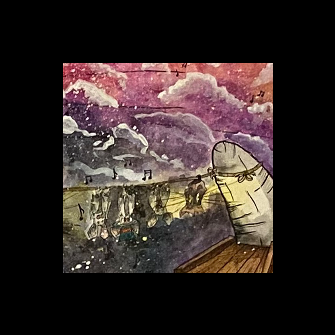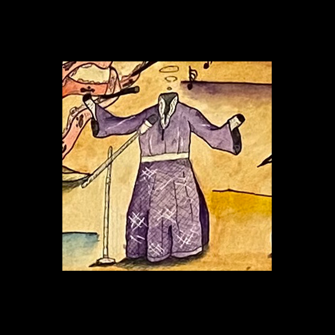 Ink and watercolor on paper