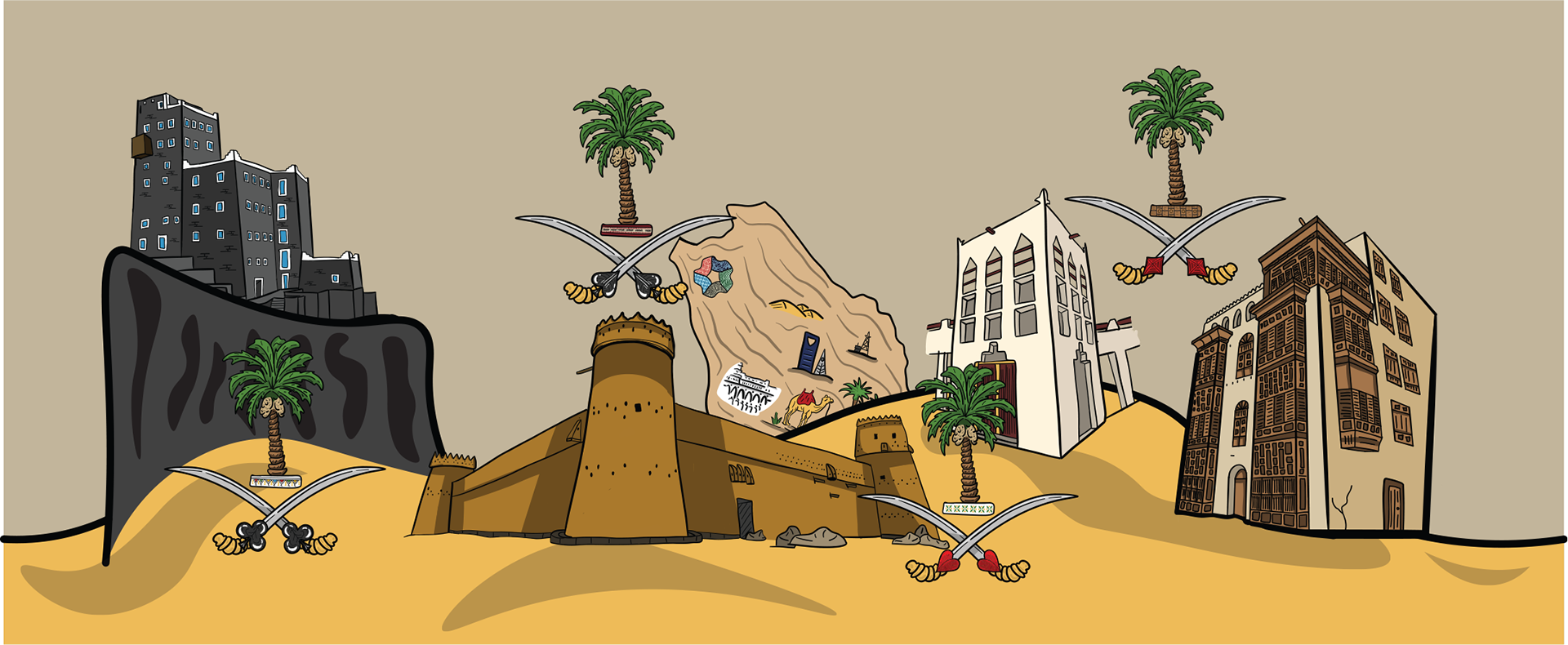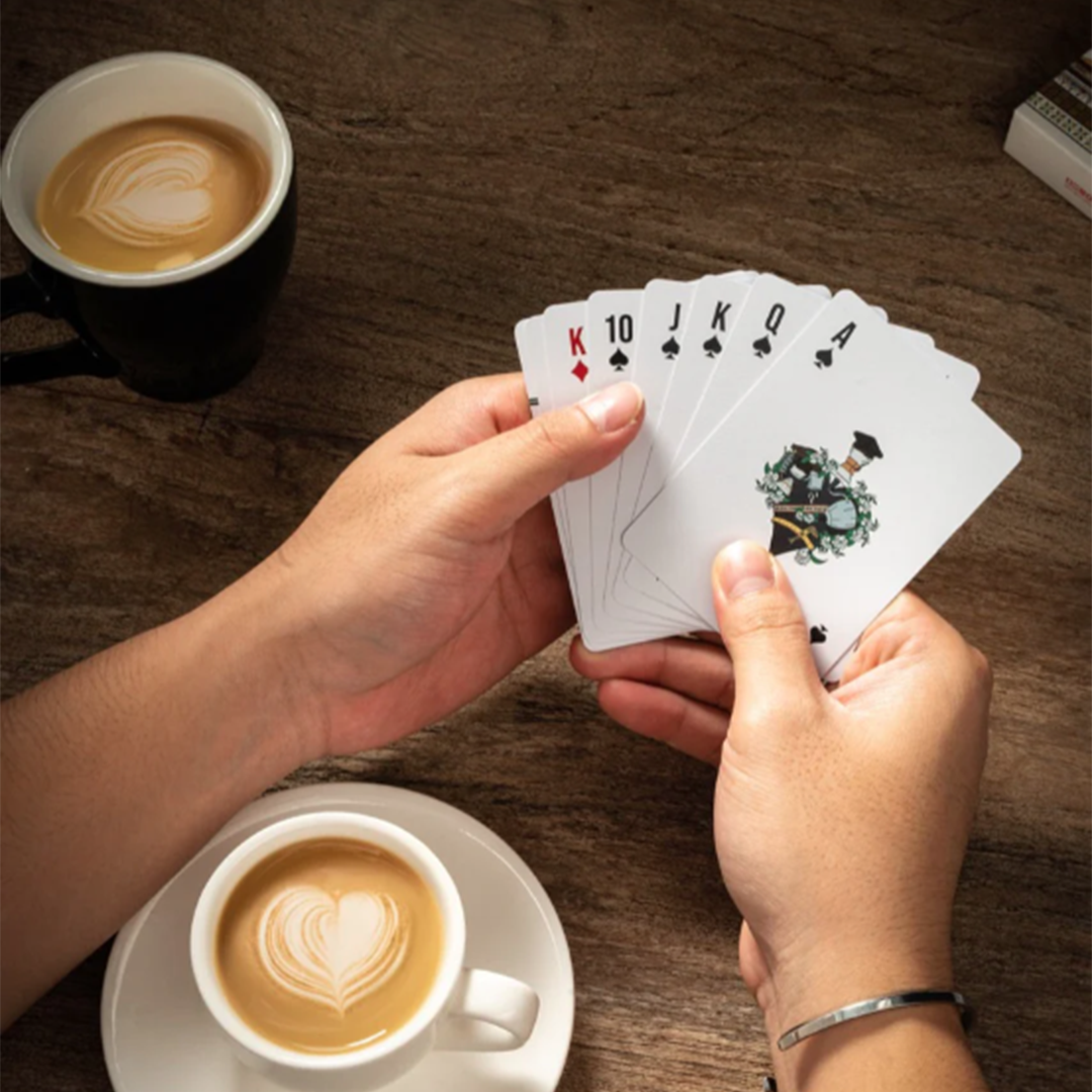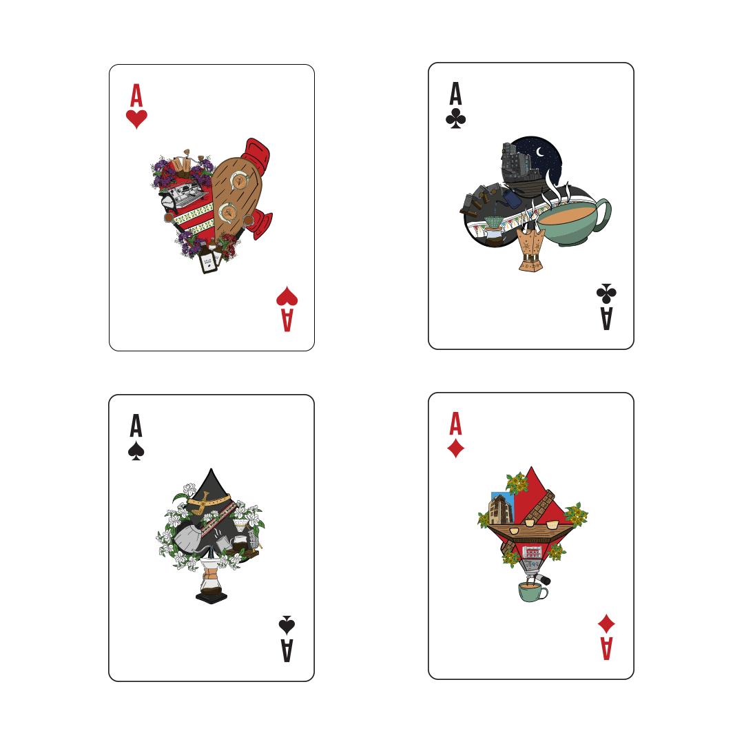 In pride of the Saudi culture and in celebration of the high level that specialty coffee has reached in our nation, we designed playing cards inspired by the depth of our local culture and connected to some of the most famous Saudi regions in collaboration with Specialty Hub. The playing cards were designed with creativity and precision, incorporating many local landmarks, along with touches of traditional attire and coffee brewing tools. These cards are not just a means of entertainment, but a complete artistic work filled with rich details