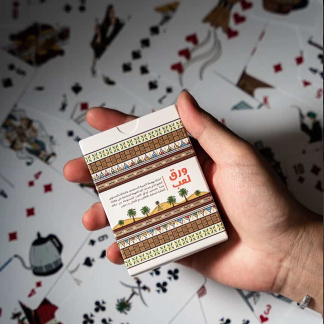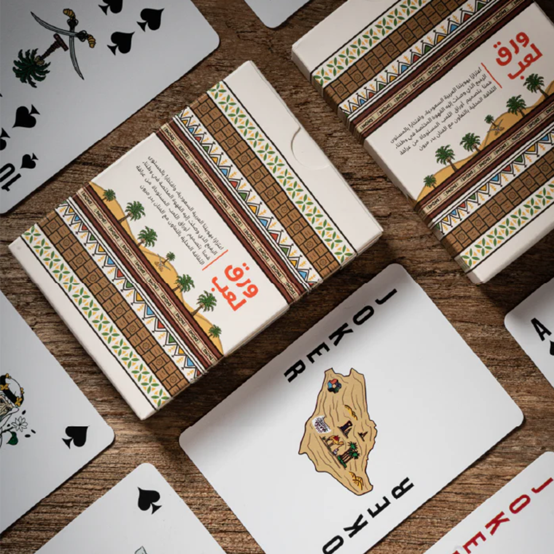 اعتزازا بهويتنا العربية السعودية، وافتخارا بالمستوى الرفيع الذي وصلت إليه القهوة المختصة في وطننا، قمنا بتصميم أوراق لعب مستوحاة من عراقة ثقافتنا المحلية وربطها ببعض أشهر المناطق السعودية بالتعاون مع شركة سبيشلتي هب. تم تصميم أوراق اللعب بكل ابداع واتقان ، حيث اجتمعت فيها العديد من المعالم المحلية، مع لمسات من الأزياء التقليدية وأدوات تحضير القهوة. هذه الأوراق ليست مجرد وسيلة للتسلية، بل هي عمل فني متكامل مليء بالتفاصيل الثرية.